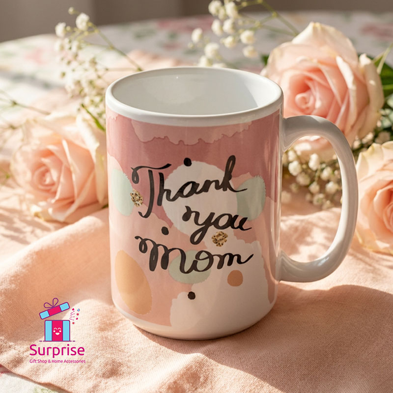 كوب بورسلين مزين بعبارة “Thank You Mom”