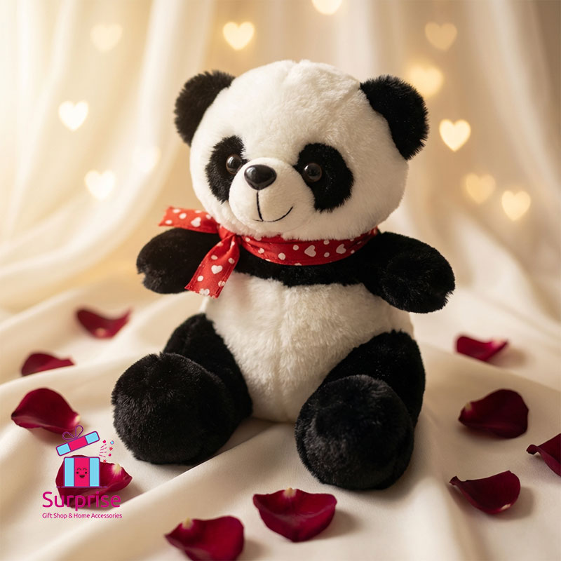 دبدوب باندا فرو مزين بفيونكة 25 سم