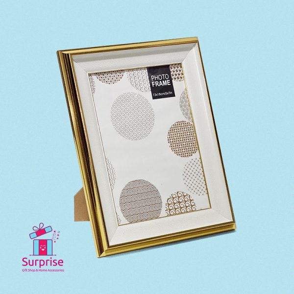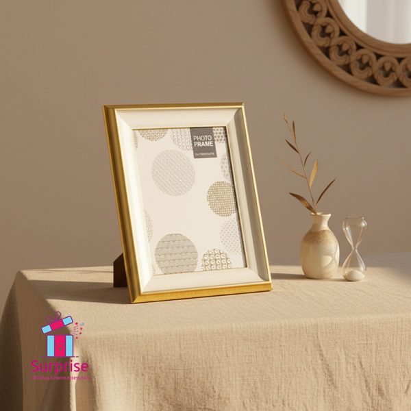 إطار أنيق باللونين الذهبي والأبيض، المصمم لصور قياسية بمقاس 7×5 بوصة. مثالي لوضعه على المكتب أو الرف أو لتعليقه على الجدار لديكور المنزل.