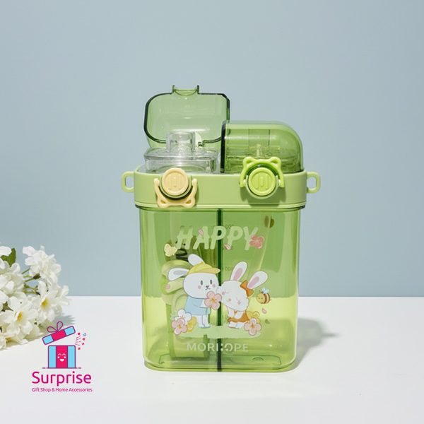 زجاجة Happy Morhop، كوب مزدوج، زجاجة مياه بفصلين، زجاجة أطفال، أرنب كرتوني، زجاجة رياضية محمولة، مانعة للتسريب، فكرة هدية، إكسسوارات أطفال، بلاستيك صديق للبيئة