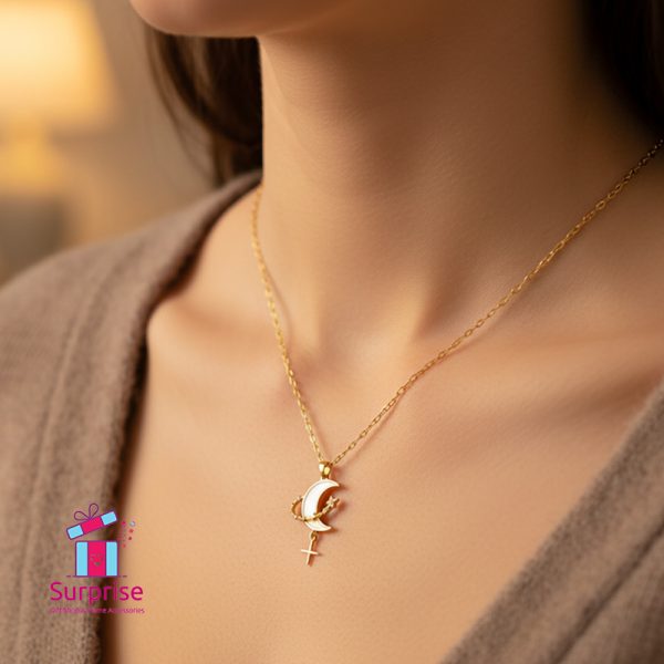 ارتقِ بإطلالتك مع هذه السلسة الأنيقة المصنوعة من ستانليس ستيل المقاوم للصدأ، والمصممة لتمنحك لمعانًا دائمًا وأناقة يومية. بفضل تصميمها العصري، تضيف لمسة راقية لأي إطلالة، لتكون قطعة أساسية خالدة في أسلوبك الأنيق.