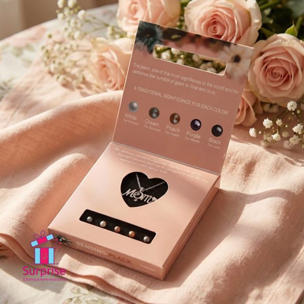 اكتشف عالمًا من المعاني مع هذا الطقم الأنيق للمجوهرات القابلة للتبديل. يحتوي على خمس حبات لؤلؤ ملونة وسلسة قلب مميزة مكتوب عليها “MOM”، لتكون هدية شخصية مثالية تعبّر عن الحب والتقدير.