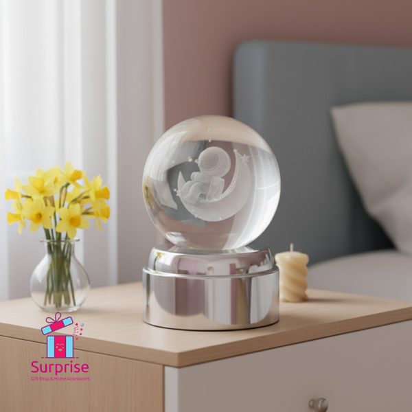 رائد فضاء ثلاثي الأبعاد منقوش بشكل مبهر على سطح القمر داخل كرة كريستال K9 عالية الجودة. هذا المصباح الليلي الفريد بتقنية LED يمنح إضاءة دافئة وهادئة، ليكون قطعة ديكور مثالية لجميع الأعمار.