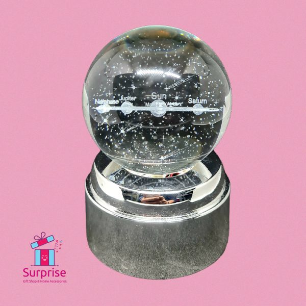 كرة كريستال ثلاثي الأبعاد متحرك مضيء بتصميم المجموعة الشمسية