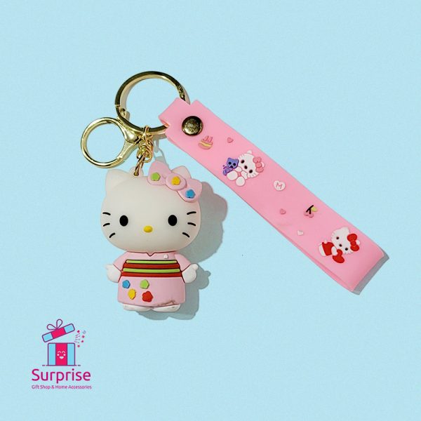 أضف لمسة من شخصية كيتي إلى أغراضك اليومية مع سلسلة المفاتيح المصنوعة من السيليكون ثلاثي الأبعاد، إكسسوار للمفاتيح أو الحقائب.
