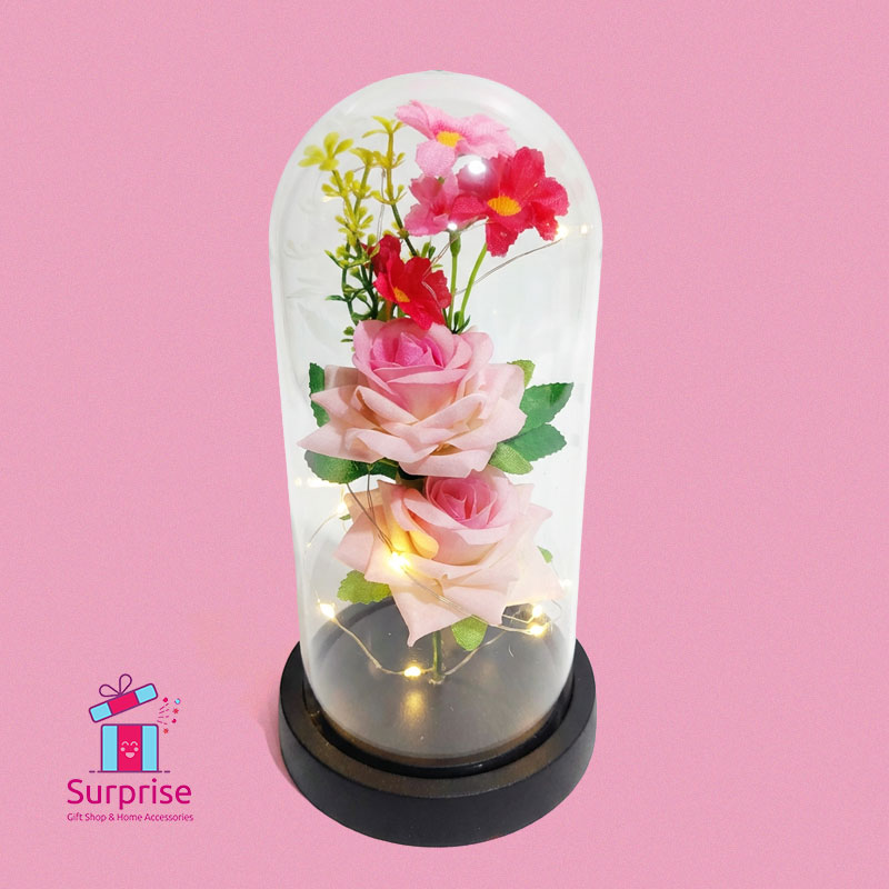 Lighted Glass Crystal Featuring an Artificial Flower