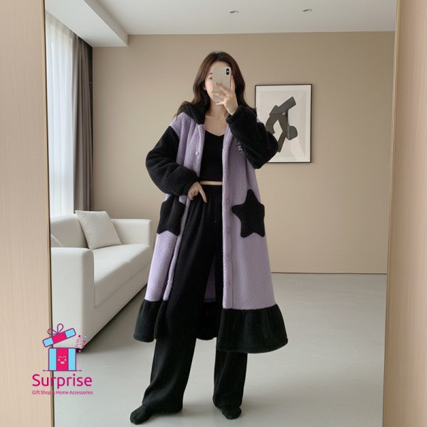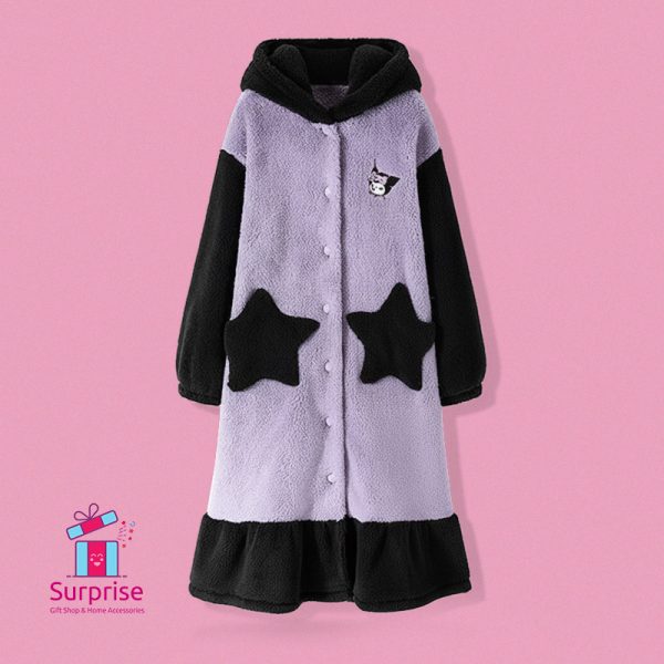 Kuromi, Sanrio, Plush Robe, Fleece Pajamas, Kawaii Loungewear, Anime Gift, Winter Wear, Womens Bathrobe, Hooded Nightgown, Coz y Home Clothes