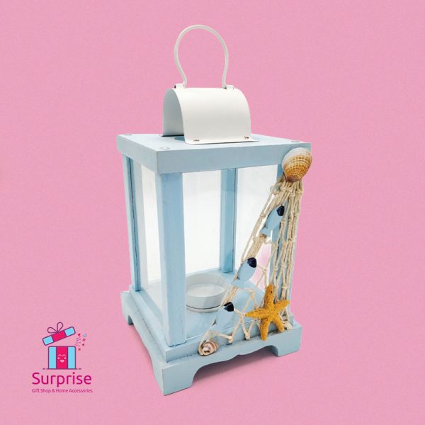 Nautical Decor, Coastal Lantern, Beach House Style, Wood Candle Holder, Sea Life Ornament, Marine Theme, Tea Light Lantern, Home Accessories, Rustic Blue Decor, Seaside Gift.
