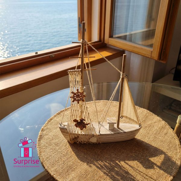Elevate your home with this handcrafted wooden sailboat, featuring a charming weathered finish and authentic marine accents. Perfect for creating a serene, coastal atmosphere in any room or office space.