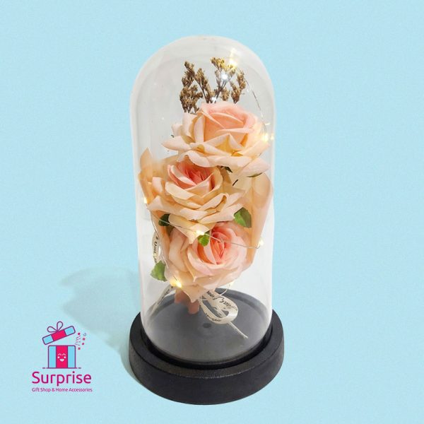 - Material: Artificial Rose, Glass Dome, Plastic Base, LED Lights
