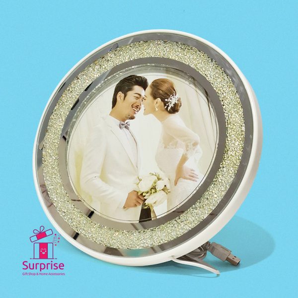 Elevate your cherished memories with this elegant round crushed crystal photo frame. Its sparkling, mirrored design adds a touch of modern luxury and brilliance to any room, perfect for home decor or as a thoughtful gift.