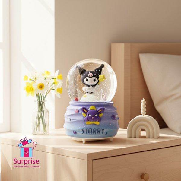 Kuromi snow globe features a charming “Starry” design with light-up and music functions. A perfect gift for Kuromi fans and collectors of all ages.