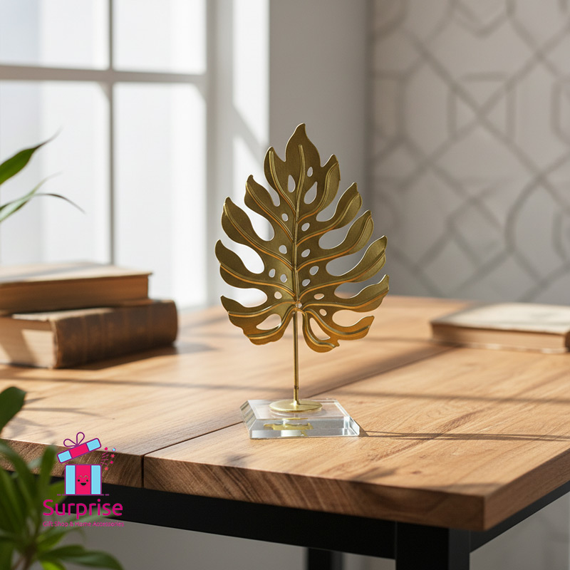 Decorative Metal Tree Leaf with Elegant Glass Base