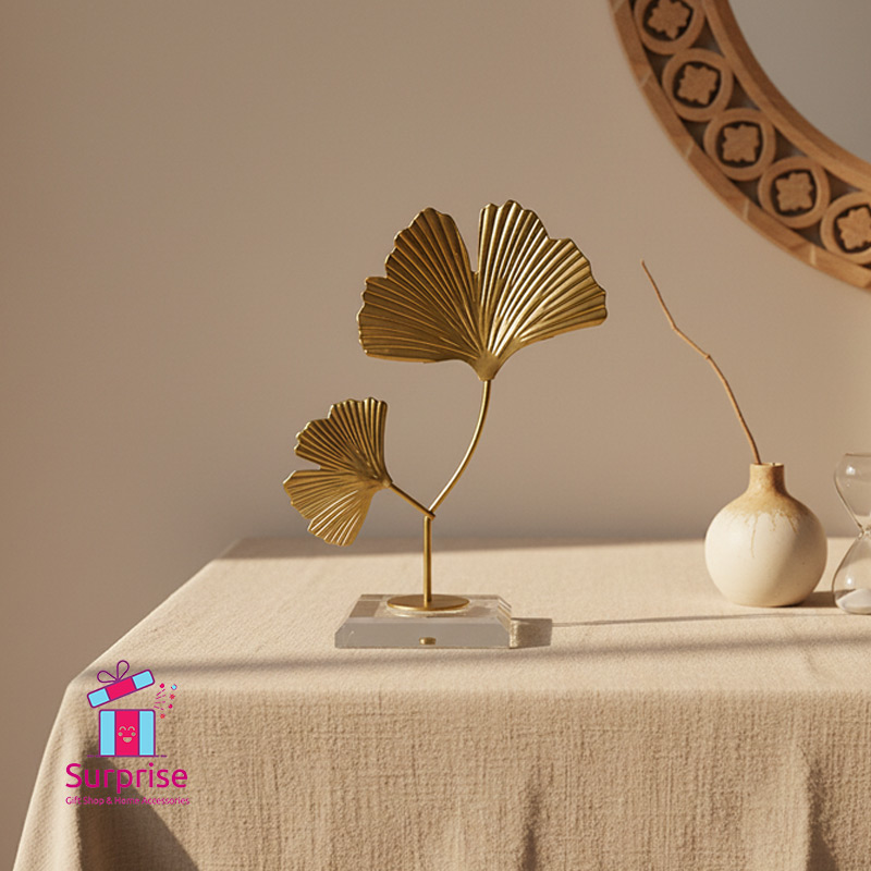 Decorative Metal Tree Leaf with Elegant Glass Base
