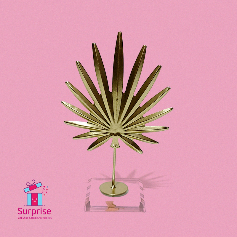 Decorative Metal Tree Leaf with Elegant Glass Base