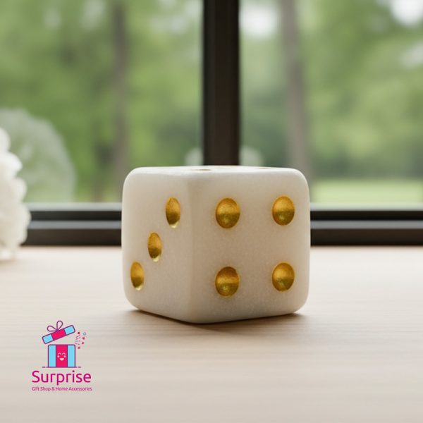 home decor, dice ornament, white gold dice, decorative accent, resin sculpture, modern home decor, elegant gift, unique home accessory, coffee table decor, shelf decor