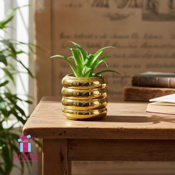 Elevate any space with this chic, maintenance-free artificial succulent. The vibrant green plant in a luxury golden pot provides instant, effortless decor. Perfect for home offices, desks, or as a sophisticated gift.